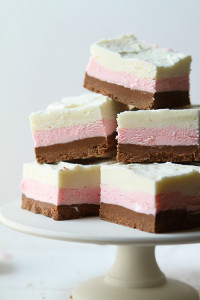 Neapolitan Fudge – Such a lovely looking dessert from I Am Baker. Same basic recipe for all 3 layers, but flavored with vanilla, chocolate and raspberry. And it says that the fudge tastes a lot like cream cheese frosting. YUM!