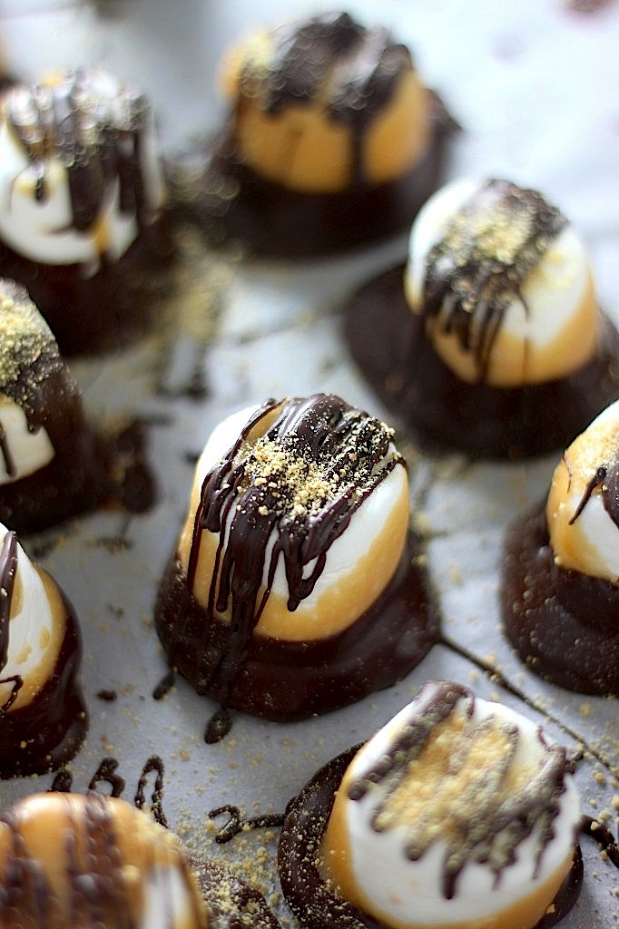 Dark Chocolate Salted Caramel Dipped Marshmallows by Baker By Nature – If you know me, then you’ve probably heard me go on and on about See’s Candy Scotchmallows. This reminds me of my all time favorite candy! When I can’t get to the store to buy some, this is the next best thing! Also great on a mini pick, as a marshmallow pop! The sprinkle of graham cracker crumbs on top gives the subtle taste of s’mores, only better because of the caramel!