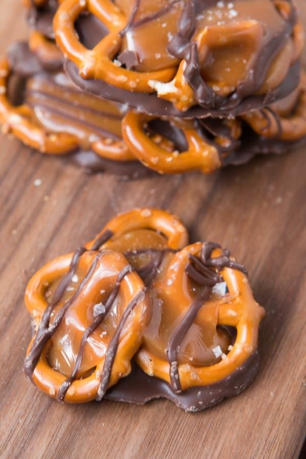 Salted Caramel Pretzel Snaps by Oh Sweet Basil – We see a version of this treat for all occasions. They are usually just a pretzel with a melted chocolate kiss and an M&M, but look out! This one is by far my favorite! You can’t eat just one (or 5 in my case)! Sweet, salty, crunchy, yummy!