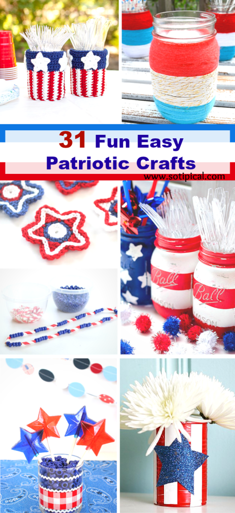 Here are 31 Fun Easy Patriotic Crafts that will take you from Memorial Day to Flag Day to the Fourth of July! They are all fairly easy to make and super cute too! So many great ideas to decorate my home and yours!