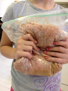 I add all ingredients in a large Ziploc bag and have one of the kids mush and squeeze it until well mixed. They think its fun. And I’m all for anything that encourages them to take an interest in cooking.