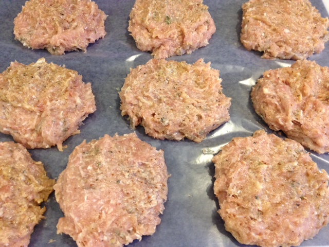 Once well blended, form into burgers (or meatballs). This mixture made 9 burgers.