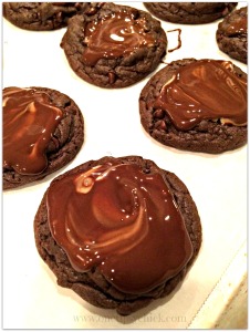 Combine cake mix, eggs and oil in a large bowl until well blended. Batter will be thick. Fold in the chocolate chips. I used a 1/2 TBSP measuring spoon to measure out the cookies. If you prefer a larger cookie, use a 1 TBSP sized spoon. Allow enough space in between cookies to spread while baking. Unwrap the mints and set aside. Bake for exactly 7 minutes. The top should just begin to crack.