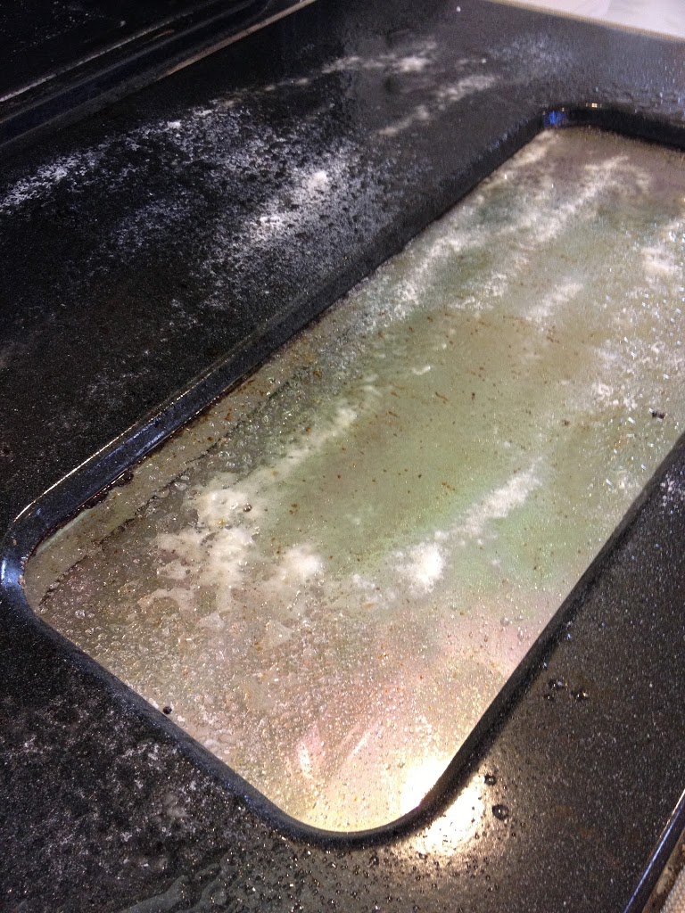 First I sprinkled some baking soda and sprayed white vinegar over it and allowed to bubble, and hopefully start loosening some of the grime. I repeated a couple of times, then really doused on the baking soda and started scrubbing.