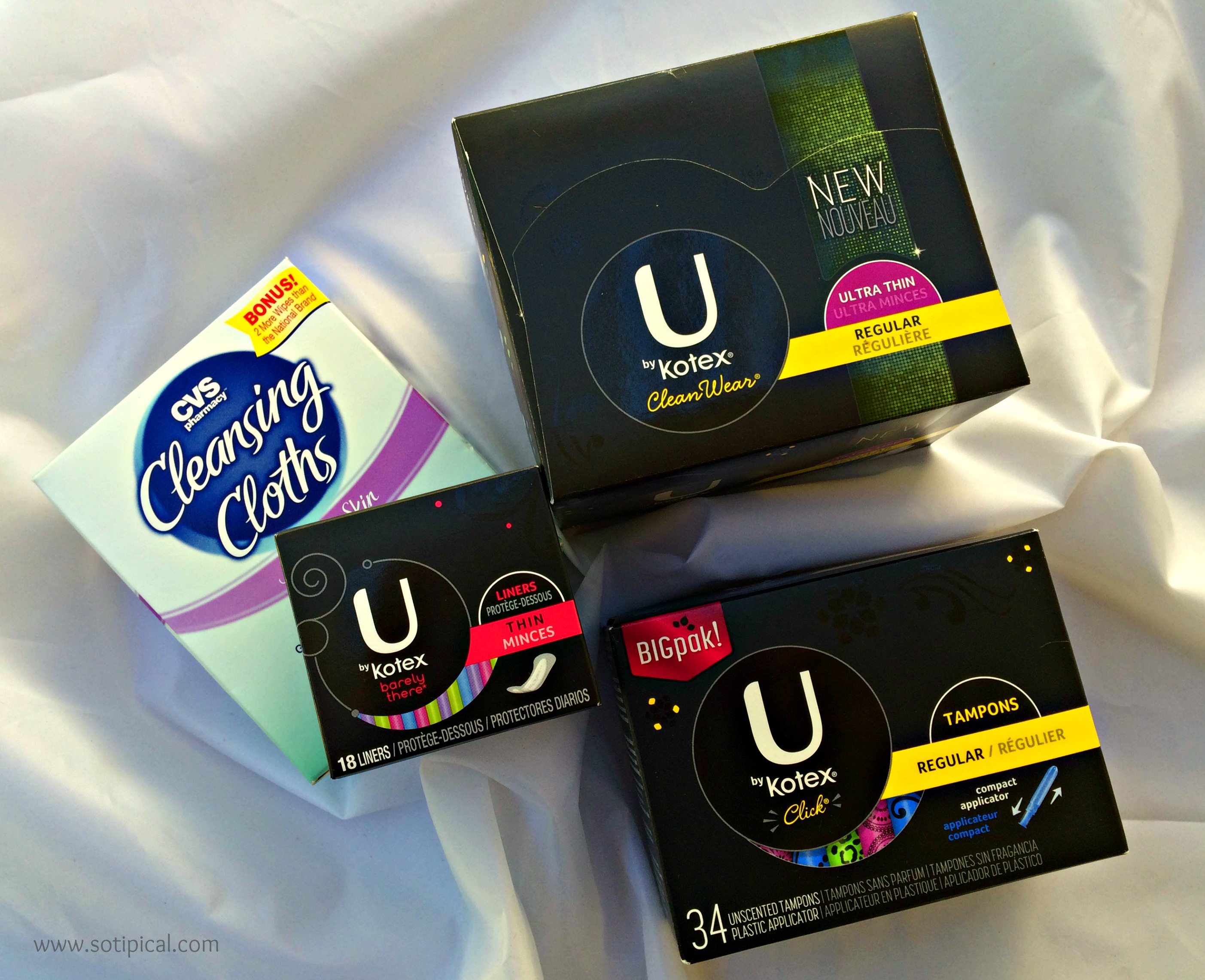 I knew I would find a good assortment of feminine protection products from U by Kotex. (Here is a $2 off coupon!) The tampons are compact in design, sleek, colorful and they protect. The pads and liners quickly draw in and lock away wetness. Along with these items, I happened to see some cleansing cloths for sensitive skin which I thought might be a good addition to the basket.
