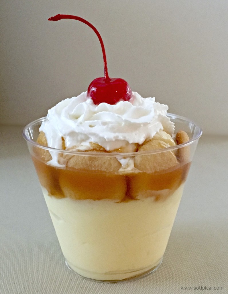 Once chilled, the pudding will set and have a thicker consistency. Before serving, slice up a large banana or two. Add sliced banana and NILLA Wafers to each cup.