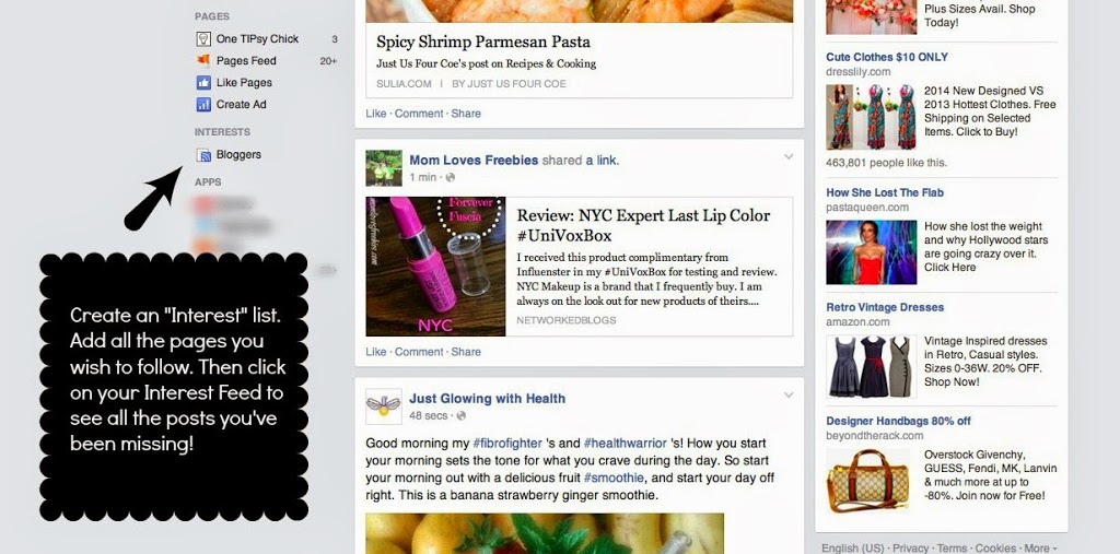 For now, I just have one category that I created called “Bloggers”. It contains several blogs that stopped appearing on my Newsfeed.  Your list will appear under “Interests” on your left sidebar. Now you can keep up with the bloggers you chose to follow!  The feed from my list shows completely different posts than my regular Newsfeed and yours can too!