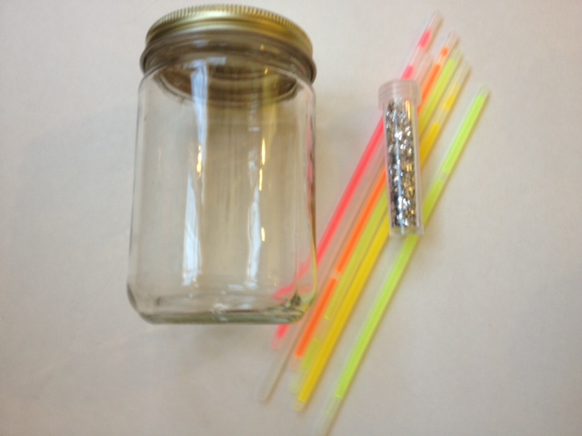 * I do not recommend having the kids make this. I never broke open a glow stick before, but there is a thin glass tub inside that holds the glow in the dark liquid. It went flying a couple of times.