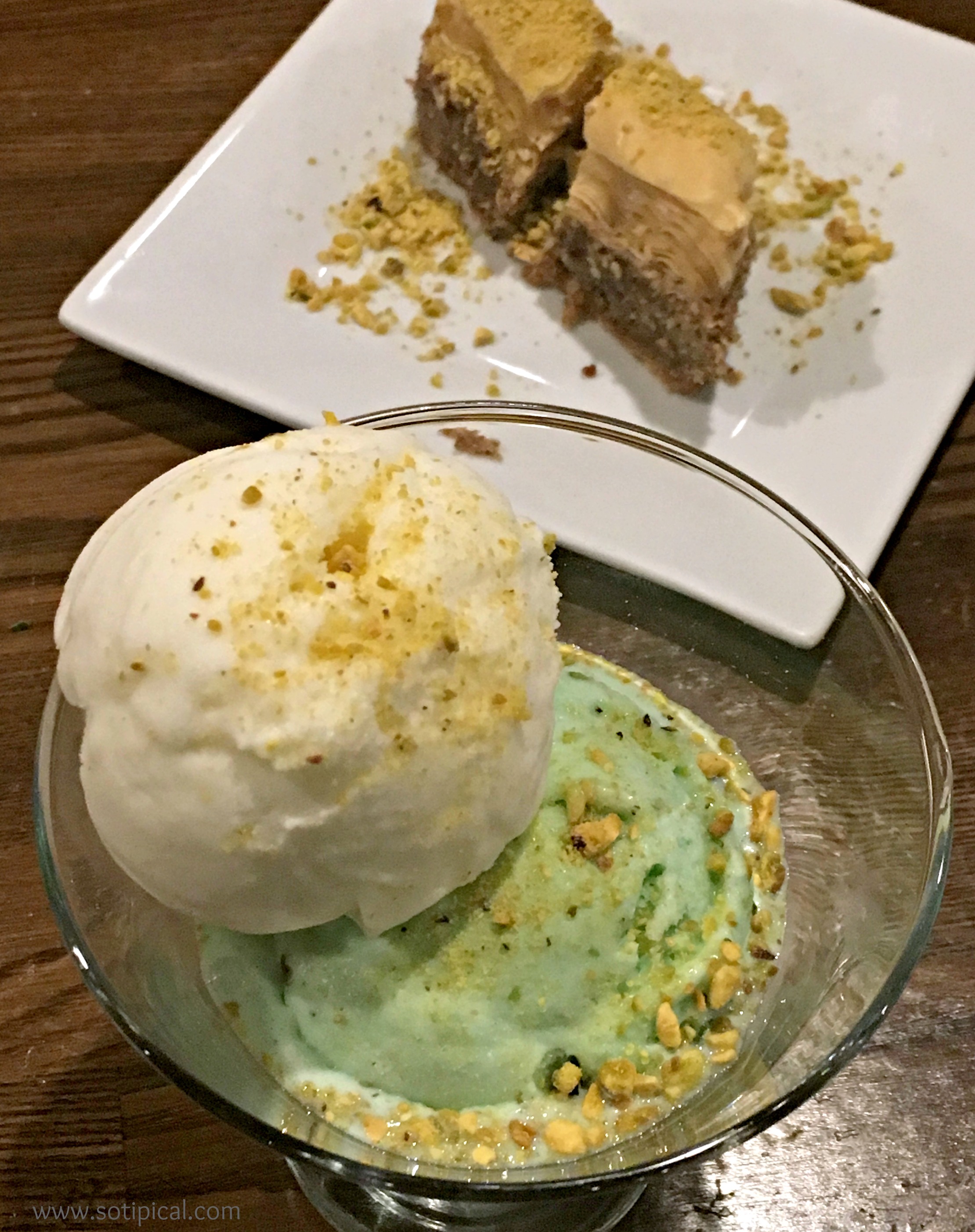 To top off this fabulous meal, we enjoyed(devoured) the Baklava and Ashta Ice Cream in Pistachio and Rose Water, topped with pistachios. The flavor combination was perfect!