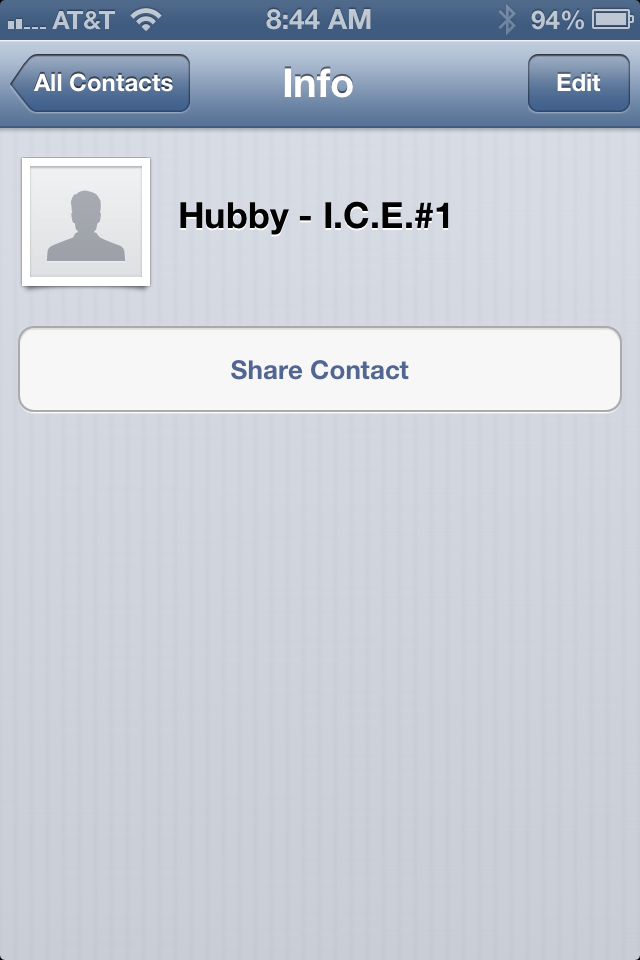 Hubby – ICE#1, Mom – ICE#2, In-laws – ICE#3, Friend – ICE#4, though I have their actual names entered.