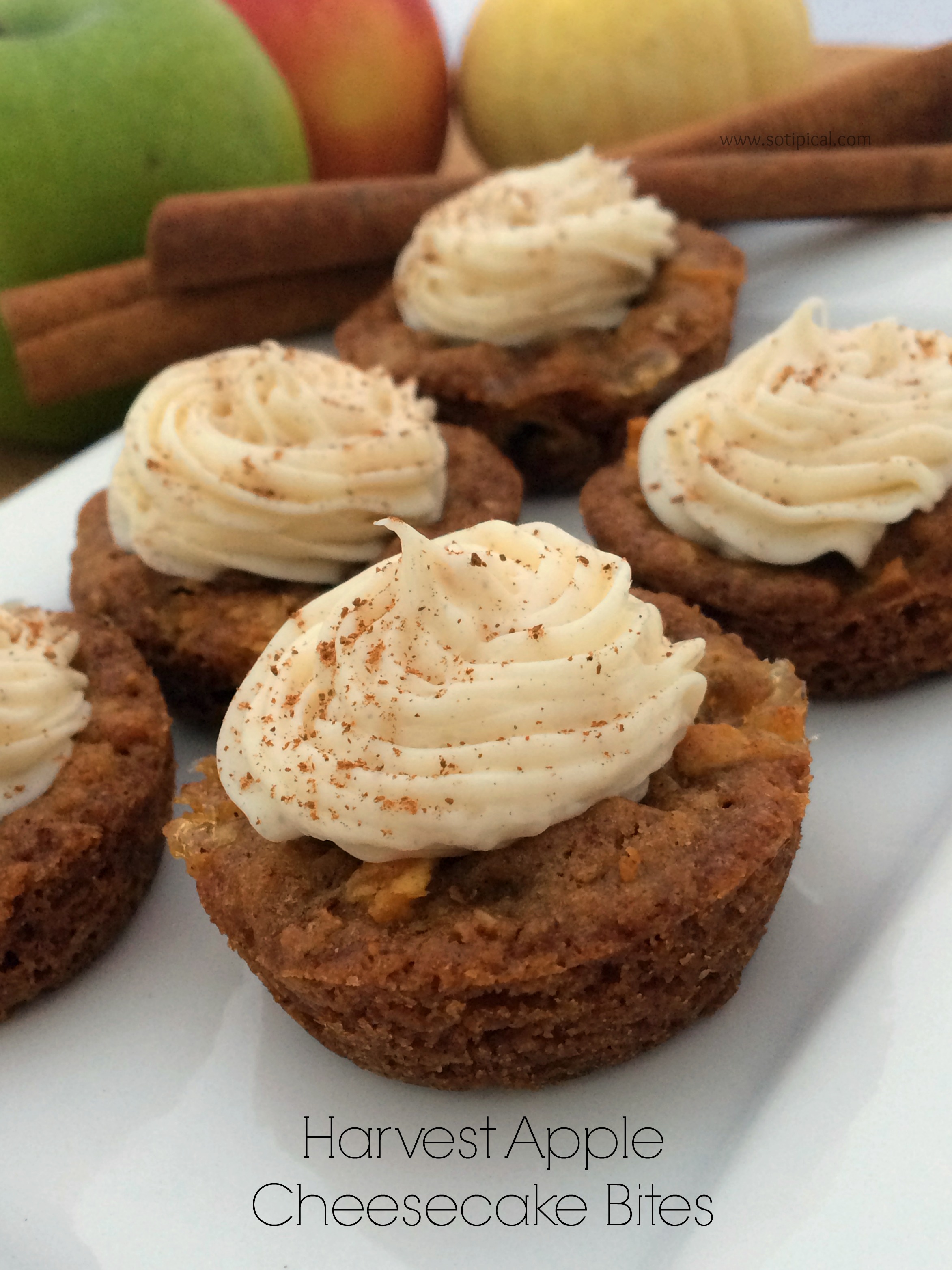 For garnish, I topped the Harvest Apple Cheesecake Bites with a little fresh ground cinnamon. Store unused portion (if there is any!!!) in the refrigerator, in an airtight container.