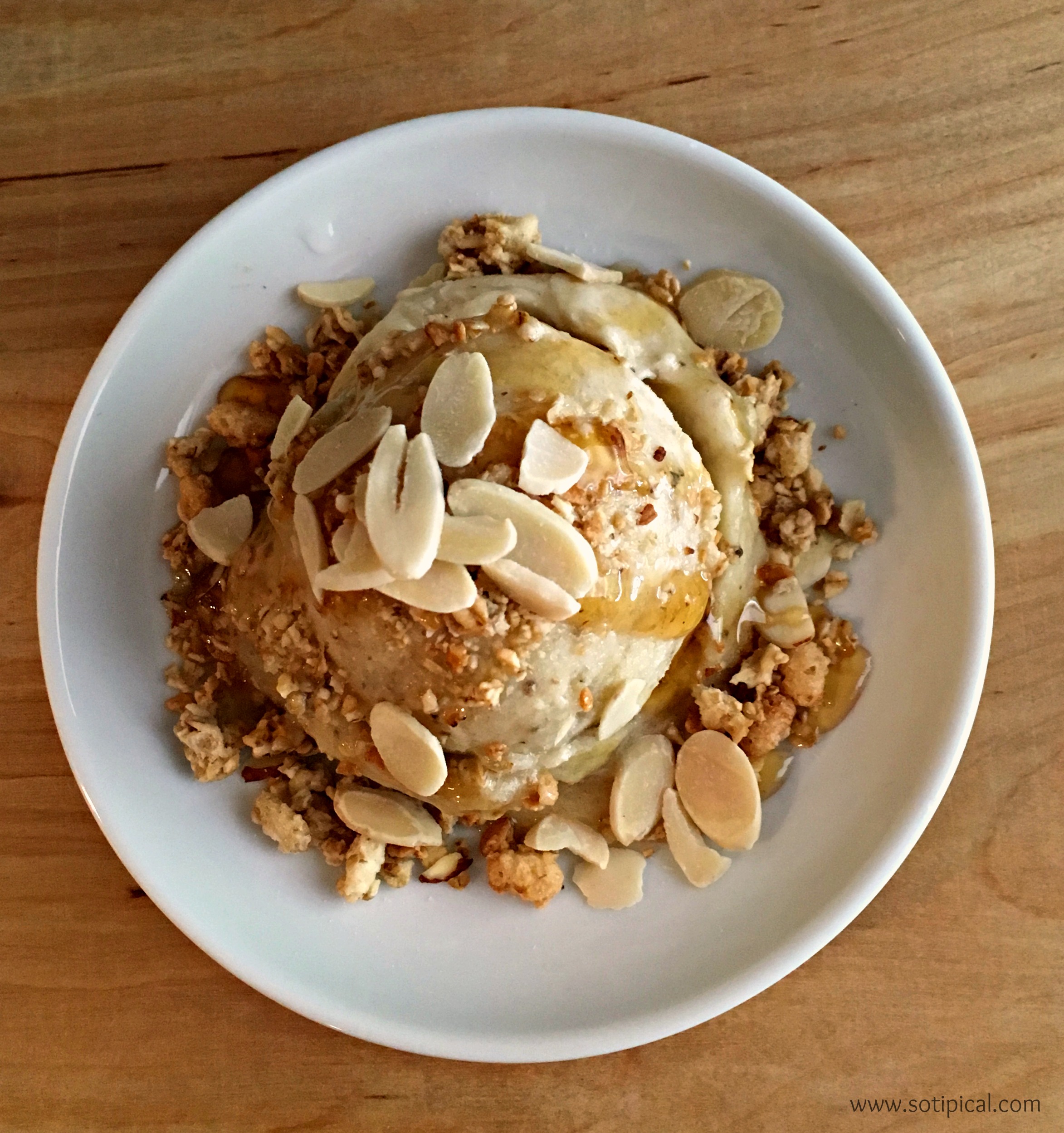 One of my favorites has been the Simply Yonanas, which is using only very ripe, frozen bananas. I top it with granola, sliced almonds and a drizzle of honey. It makes such a great afternoon snack when I’m craving something sweet.