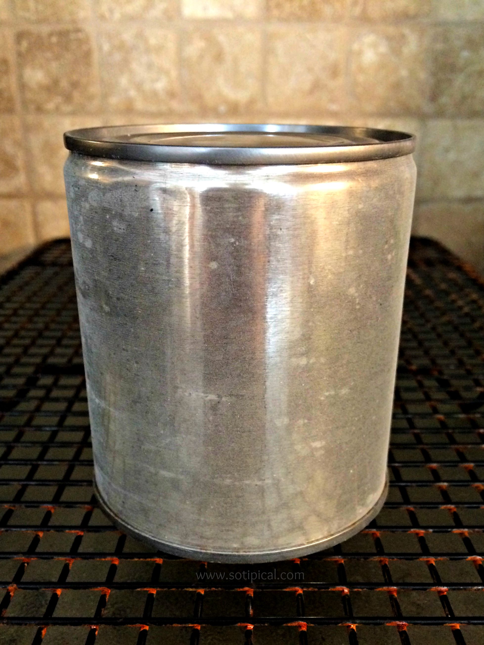 Remove label from can. Place can on its side in a LARGE POT. Fill the pot with water so the water line is at least a full inch or two above the can.