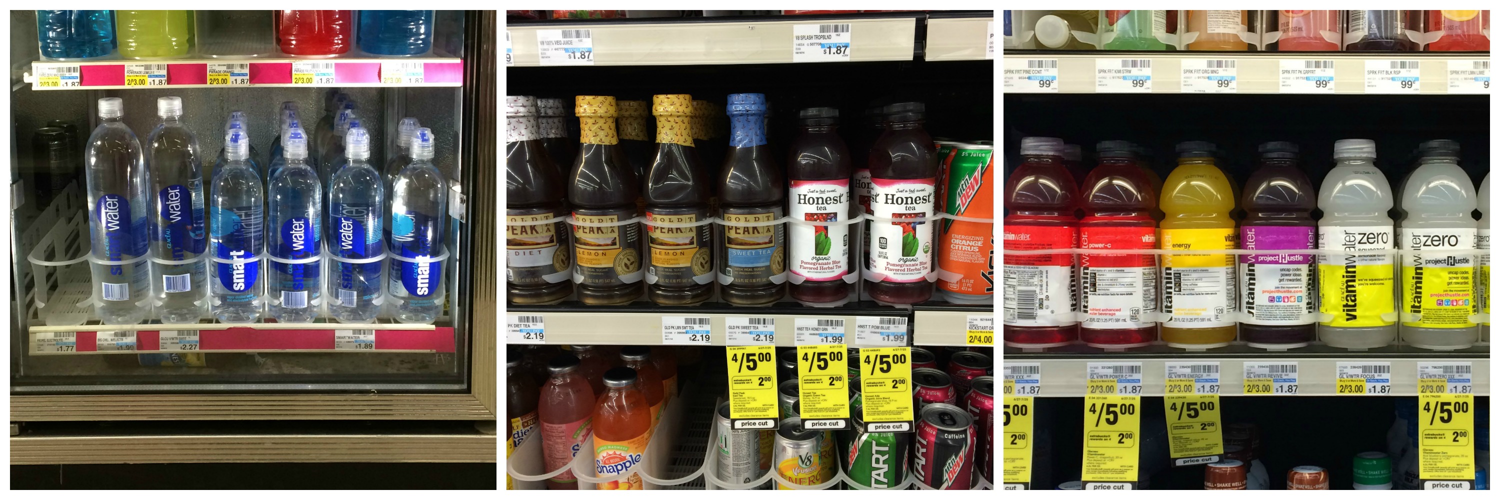 Each CVS pharmacy I have shopped at, has a Beverage Center on the far wall of the Grocery section. You will find these beverages there, or perhaps in a special display cooler near the registers.
