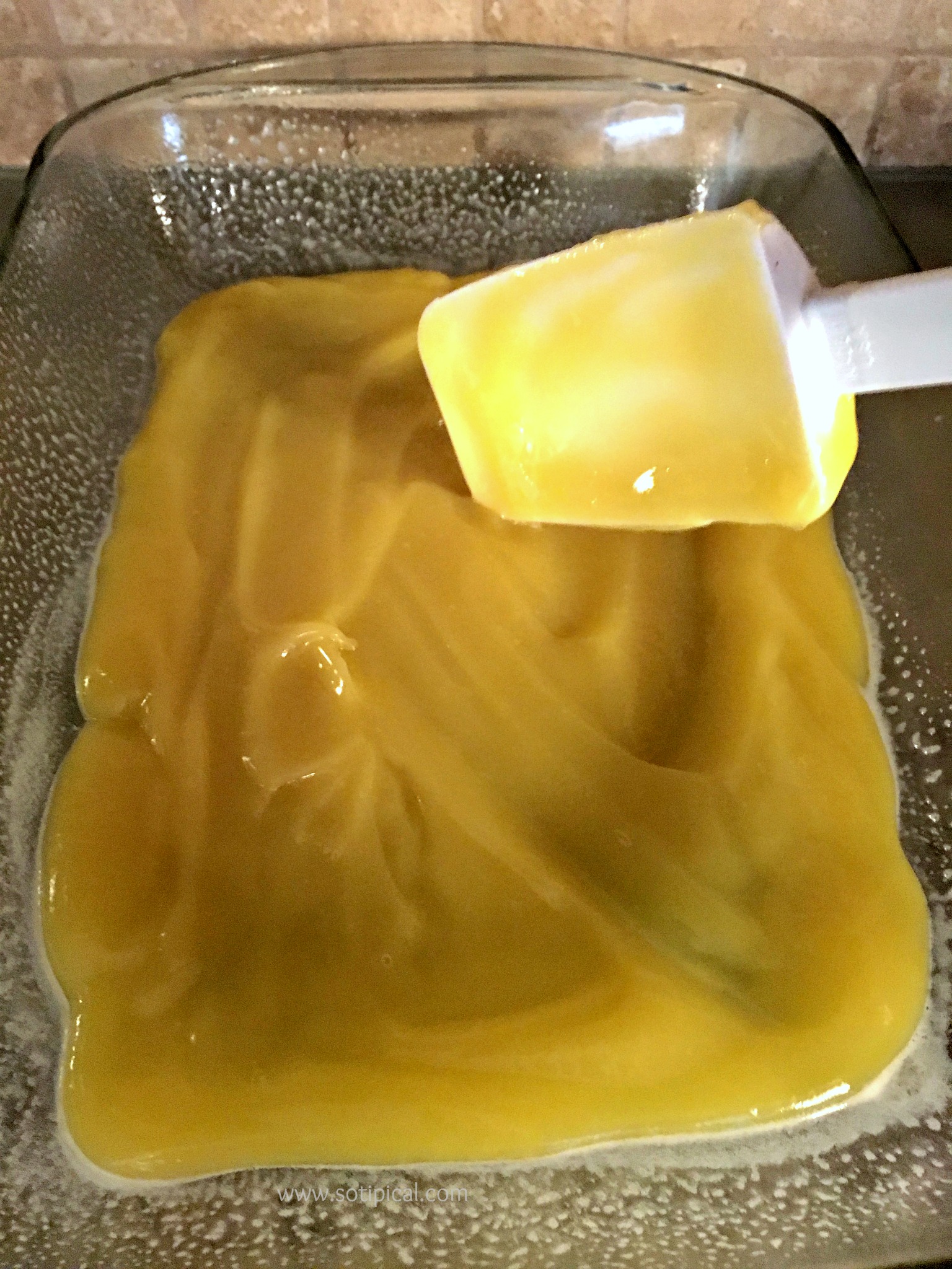 In a small microwave-safe bowl, melt the butter butter. If you cut the butter into slices, it will melt faster and more evenly. I also like to leave it out for awhile to soften, then I prefer to melt on “defrost” setting for 30 second intervals, until melted, so the butter doesn’t get too hot.