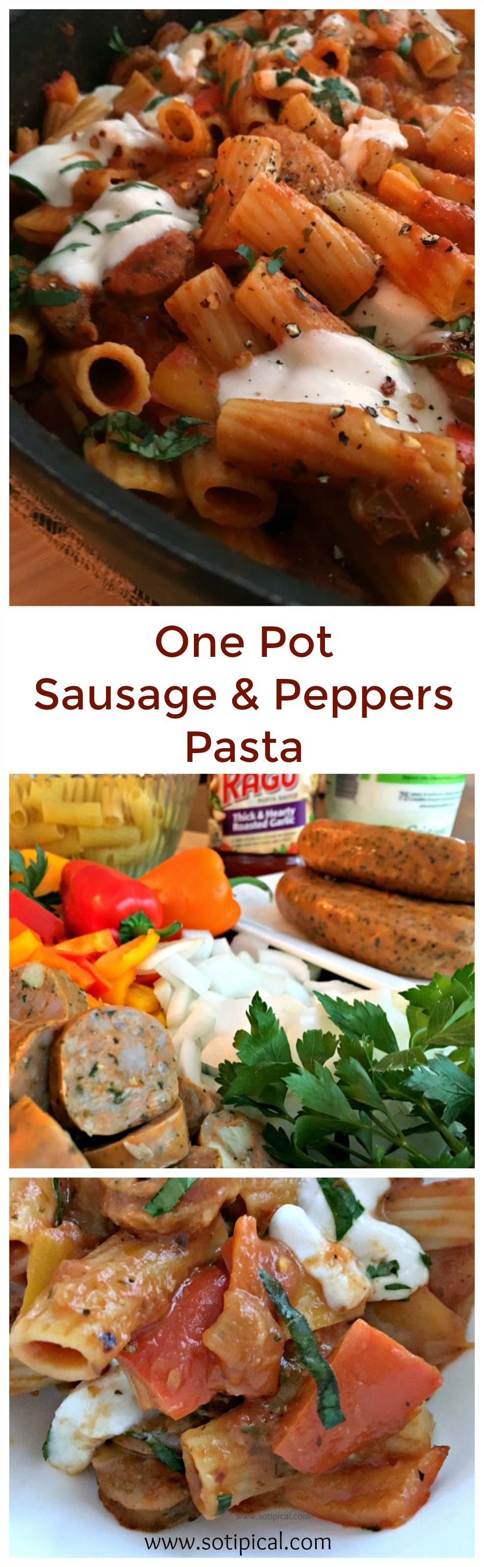 One Pot Sausage and Peppers Pasta – So TIPical Me #SimmeredInTradition