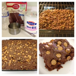 The kiddos aren’t thrilled with plain cake so I sprinkled butterscotch chips and toffee bits on the top before baking.