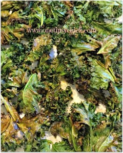 I hear so much about Kale Chips and I one day I sampled some in a market, but couldn’t bring myself to spend $5.99 on such a small bag. I found this recipe on the Food Network and decided to give it a try.