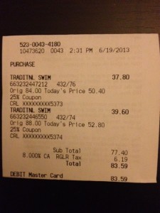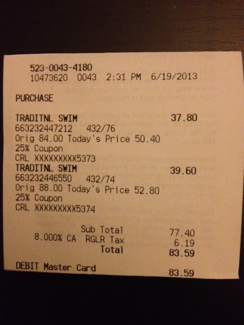 I was ecstatic! I was going to spend $172 plus tax for a swimsuit. (What was I thinking???)