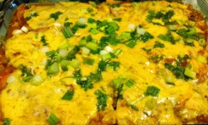 Thats right, spaghetti squash in an enchilada casserole! I eat spaghetti squash. I don’t love it, but I’ll eat it any time and I can only eat so much of it. Previously, my favorite way was to serve it with a very meaty spaghetti sauce and lots of parmesan. Then I ran across a recipe for enchiladas that were filled with spaghetti squash. It didn’t really appeal to me, so I came up with this layered casserole and loved it!