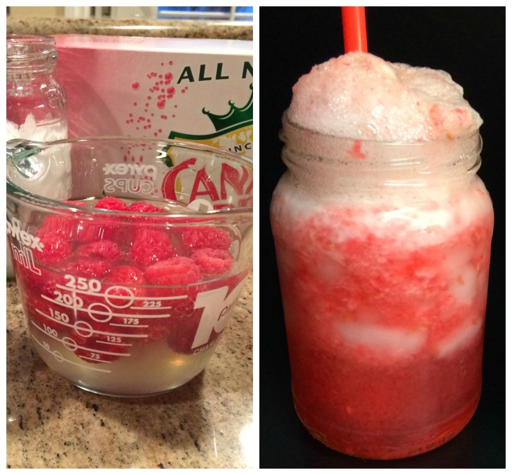 Raspberry Sparkling Cooler – Add 3/4 Cup Fresh Raspberries in a measuring cup, then fill it with water to the 1 Cup line. Puree in blender with 1 TBSP Honey and a squeeze of fresh lemon. Fill your glass half way with fruit puree and top with All Natural Canada Dry® Raspberry Sparkling Seltzer Water and lots of ice.