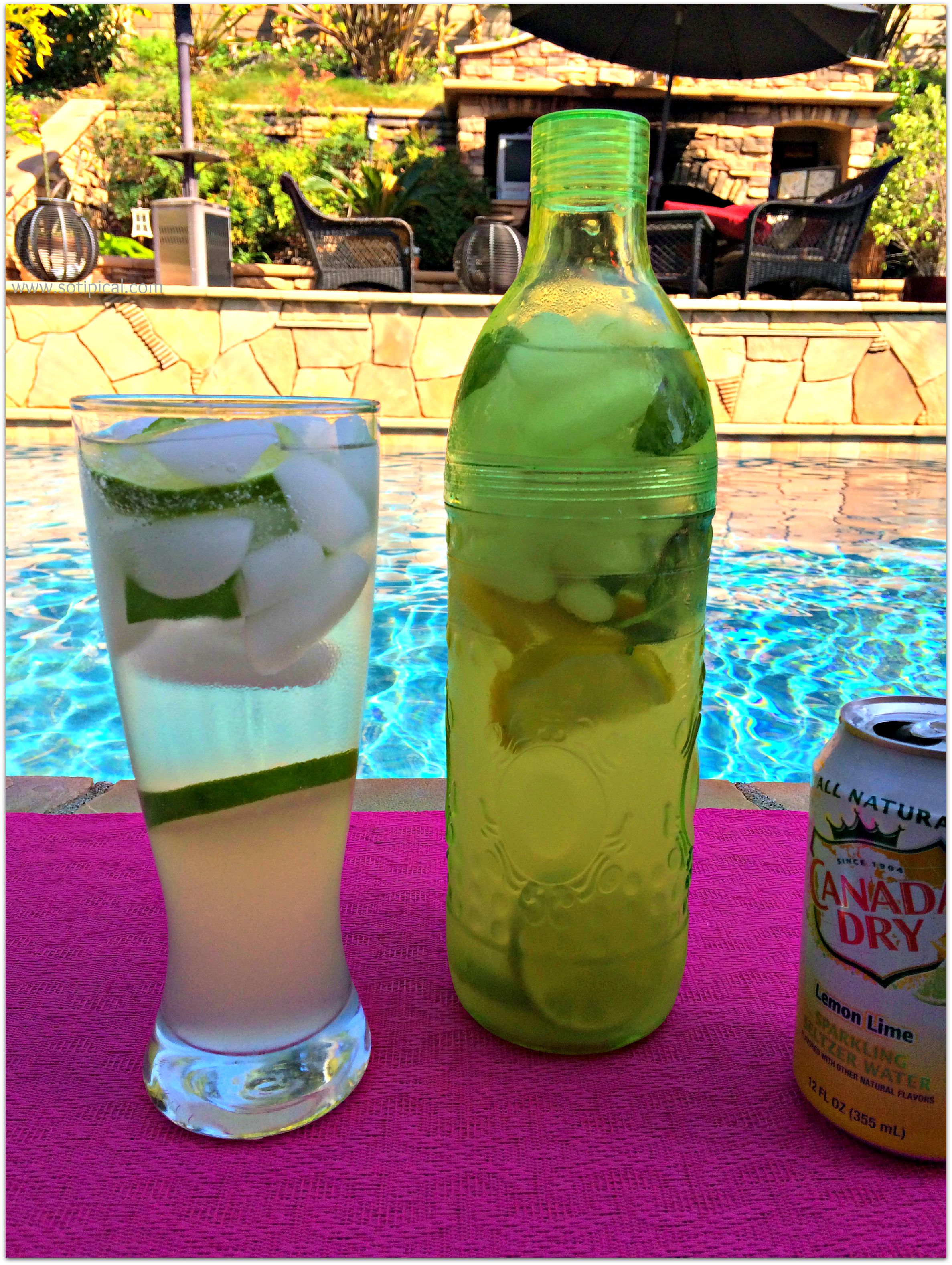 After our Sparkling Sangria Cooler, we switched over to Sparkling Basil Lemonade. Fill a glass 2/3 with lemonade and top off with Canada Dry® Lemon Lime Sparkling Seltzer Water. Garnish with slices of lemons, limes and a basil leaf. I normally make fresh lemonade, but this time around I happened to buy a bottle of organic lemonade. If I do buy lemonade, I always add slices of lemons and limes to give it more of a homemade taste. We love fresh basil, so we often add 5-6 leaves in the pitcher to give it a hint of mint.