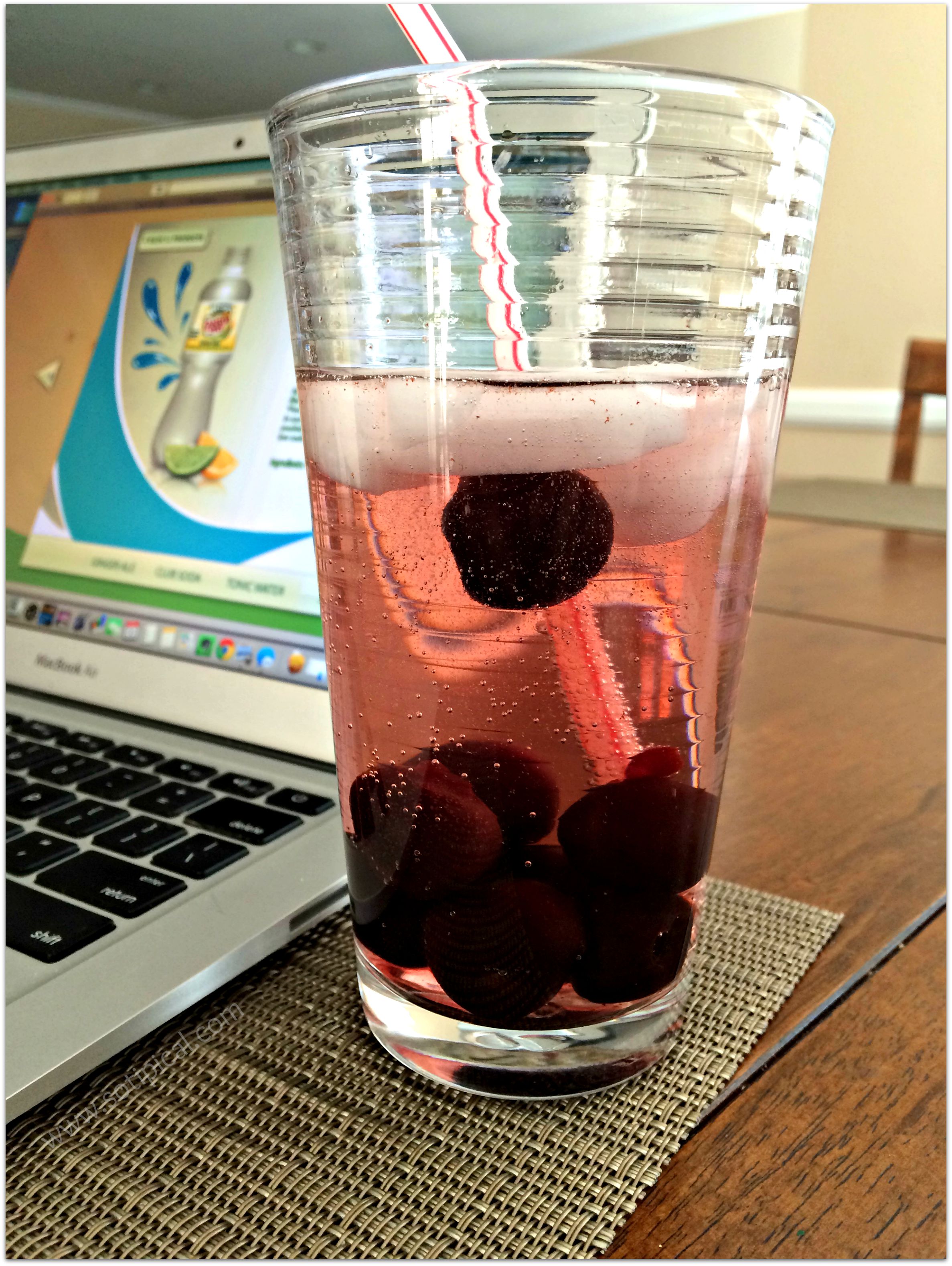 When I’m working, I tend to snack more without realizing it. I found that if I have something yummy to drink, I don’t think about extra snacking. This day, I opted for a Sparkling Cherry Lime Cooler. This was very simple and very refreshing. I began with a glass of Canada Dry® Lemon Lime Sparkling Seltzer Water on ice. I added frozen cherries and a squeeze of fresh lime. I will be drinking this a lot!