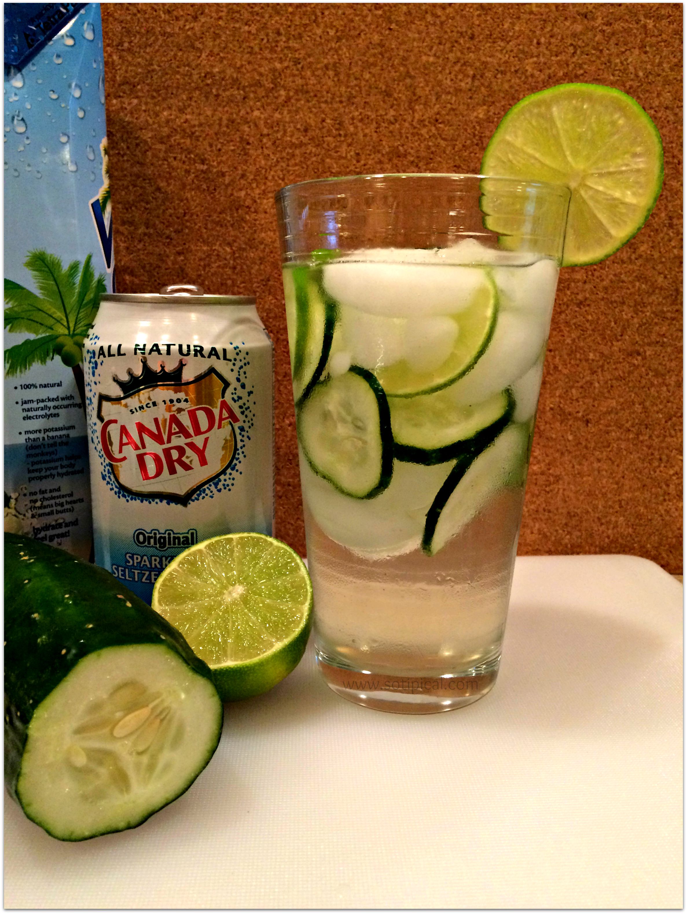 The next day I took a Pilates class. Afterwards, I replenished with a Sparkling Coconut Cucumber Cooler. It was really yummy! I used equal parts of Coconut Water and Canada Dry® Original Sparkling Seltzer Water with some slices of cucumber and lime.