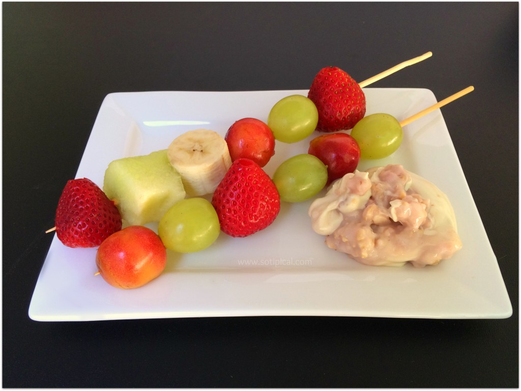 We enjoyed this dip 2 ways so far. First we made fruit kebabs. It was fun for the four of us to make them with our favorite fruit combos.