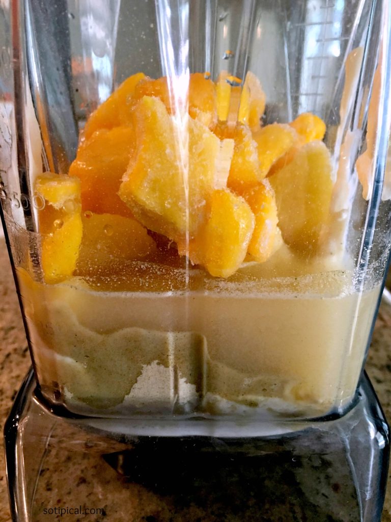 Sipping my Tropical Protein Smoothie takes me back to last summer when I visited Hawaii! The island breeze, warm sun and tropical fruit! YUM! While there, I had the BEST pineapple smoothie. I’m not sure what was in it, but it sure was delicious! Since then, I’ve tried to come up with something close and haven’t quite figured it out, because I think it may be the fresh Hawaiian pineapple that makes the difference. In the mean time, I’ve come up with this Tropical Protein Smoothie which is a great alternative! Great for breakfast, post workout, and even an afternoon pick-me-up! Its so good!