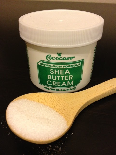 Dampen your hands and apply about 1 teaspoon of sugar. Rub it into your hands like you would lather them with soap. Really work it in and make sure to get around your cuticles too. It feel so invigorating, like a mini hand massage. Once complete, rinse with warm water. You will immediately feel a difference! Dry your hands and apply a small amount of shea butter cream. In just a few moments your hands will feel silky, soft and so amazing.