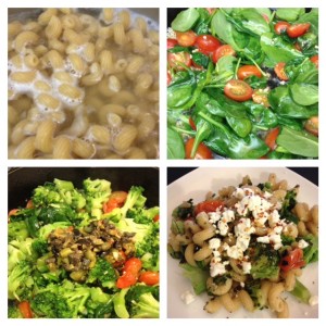 Once drained, I combined the pasta with veggies. I topped it with cracked pepper, a sprinkle of oregano and feta crumbles and dinner was served in just under 30 minutes!